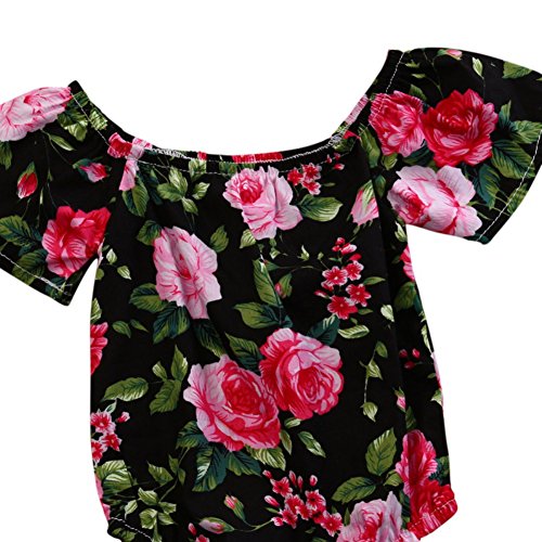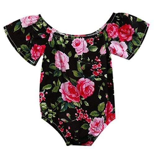 Cutelove 子供 女の子 幼児 赤ちゃん ベビースーツ ボディスーツ カバーオール ジャンプスーツ 黒 花柄 ロンパース 三角 夏 ふわふわ飛び袖 可愛い 素敵 コットン スカート ワンピース