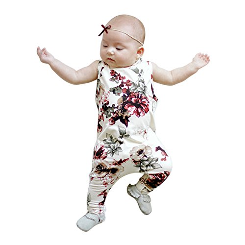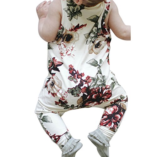 Cutelove 2017年新品 夏 女の子 赤ちゃん ボディスーツ ベビースーツ カバーオール ロンパース 袖なし 花柄 プリント 可愛い