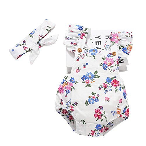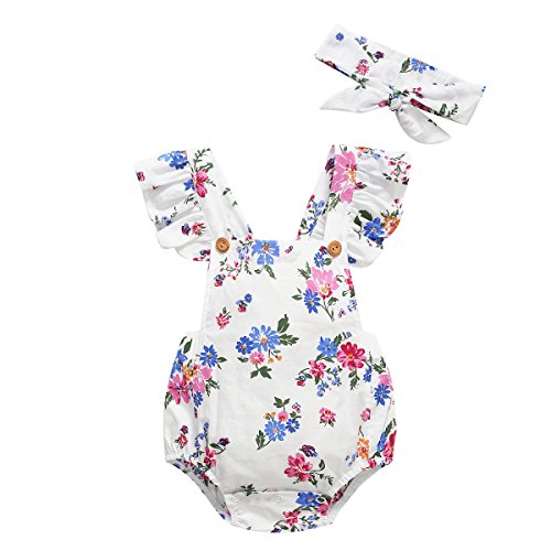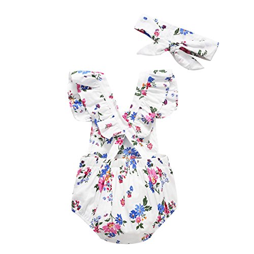 Cutelove 2017年新品 夏 女の子 赤ちゃん ボディスーツ ジャンプスーツ 花柄 プリント ロンパース 三角 二点セット ヘッドバンド付き