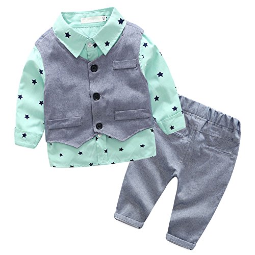 Cutelove 2019年新品 春、秋 男の子 スーツ ベスト+Tシャツ+ズボン ドット 三点セット 礼服 結婚式 長袖 コットン おしゃれ