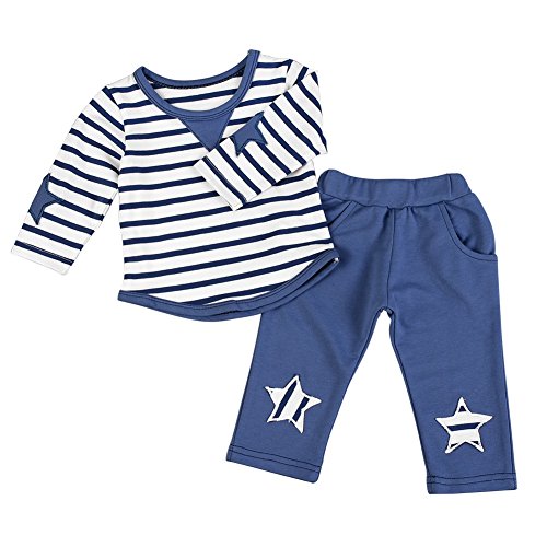 Cutelove 2017年新品 春、秋 男の子 スーツ Tシャツ&カジュアルパンツ 二点セット ストライプ 韓国風 長袖 コットン おしゃれ