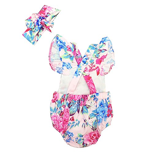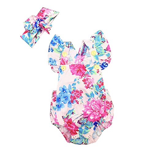 Cutelove 夏 コットン 袖無しロンパース+ヘッドバンド2点セット 女の子 新生児 赤ちゃん