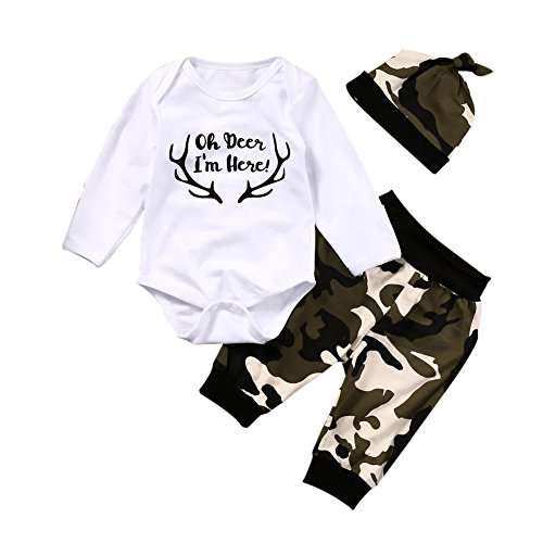 Cutelove レオタード+迷彩ロングパンツ+帽子3点セット 男の子 赤ちゃん 春 秋 コットン 可愛い