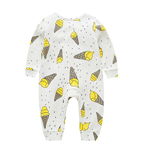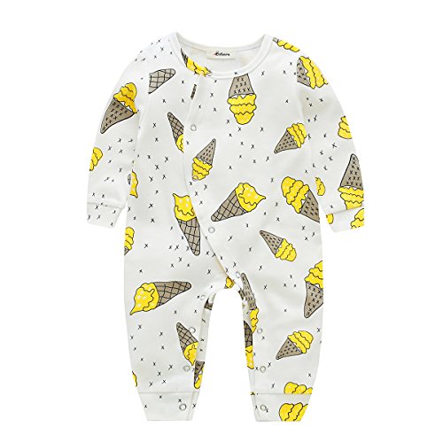 Cutelove カーバーオール ロンパース パジャマ アイスクリーム柄 長袖 男の子 女の子 ベビー 赤ちゃん 幼児 ベビー服 秋 冬 可愛い ファッション 素敵 カジュアル 普段着 チュチュベビー 開きスナップボタン 3色