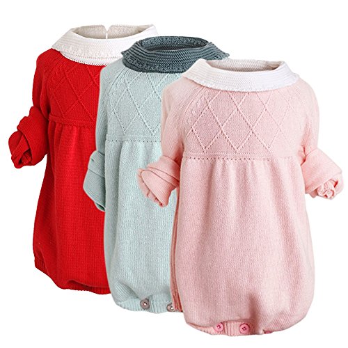 Cutelove カーバーオール ロンパース ラペル ニット 編み物 長袖 女の子 ベビー 赤ちゃん 幼児 ベビー服 秋 冬 可愛い ファッション 素敵 カジュアル 普段着 チュチュベビー 開きスナップボタン 3色