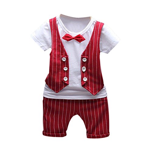 Cutelove 子供服 ベスト Tシャツ Tシャツ&パンツ 上下セット 半袖 ショートパンツ ネクタイ付き 男の子 赤ちゃん 可愛い 夏 3色