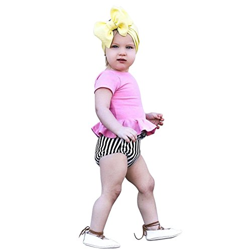 Cutelove 子供服 Tシャツ 上着 シャツ トップス 半袖 バックレス 女の子 ベビー 可愛い 夏 黒と白ストライプ ピンク おしゃれ カジュアル きれい