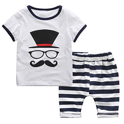Cutelove 子供服 Tシャツ Tシャツ&パンツ 上下セット 髭柄 ストライプ 半袖 ショートパンツ 男の子 赤ちゃん 可愛い 夏 カジュアル