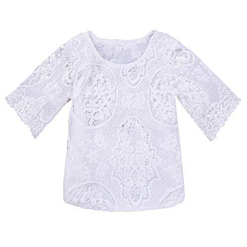 Cutelove 子供服 Tシャツ 上着 シャツ ブラウス 半袖 5分袖 レース 女の子 ベビー 可愛い 夏 ホワイト