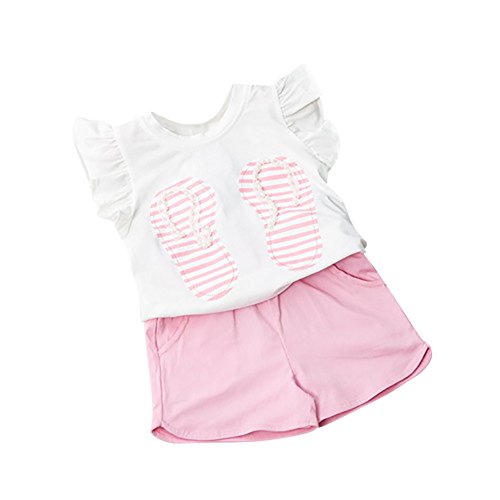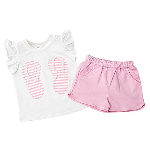Cutelove 子供服 Tシャツ Tシャツ&パンツ 上下セット 可愛い スリッパ柄 フライ袖 ショートパンツ 女の子 赤ちゃん 夏 カジュアル