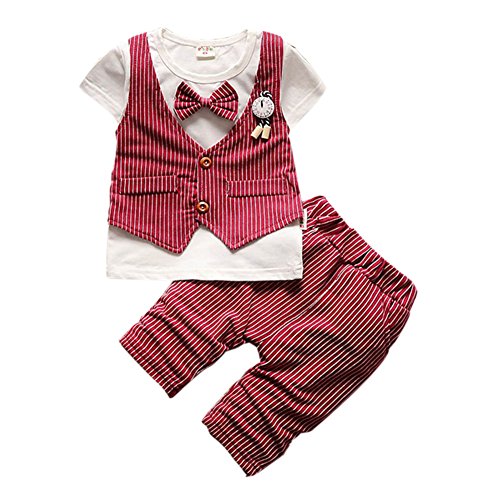 Cutelove 子供服 ベスト Tシャツ Tシャツ&パンツ 上下セット ショートパンツ ネクタイ付き 半袖 男の子 赤ちゃん 可愛い 夏 3色
