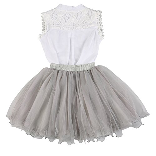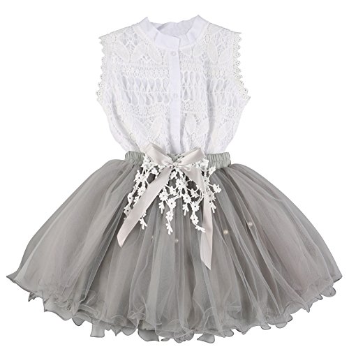 Cutelove 子供服 Tシャツ&スカート 上下セット タンクトップ 上着 ボンボンスカート 女の子 キッズ ビーズ飾り レース 可愛い 袖なし 夏 おしゃれ