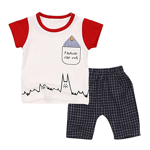 Cutelove 子供服 Tシャツ Tシャツ&パンツ 上下セット 可愛い柄 半袖 ショートパンツ 格子柄 男の子 赤ちゃん 夏 カジュアル