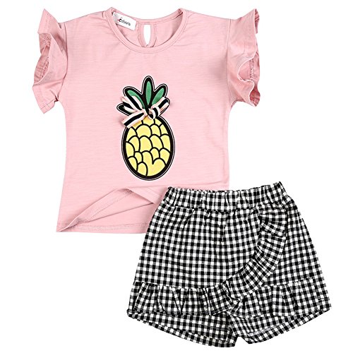Cutelove 子供服 Tシャツ Tシャツ&パンツ 上下セット 可愛い パイナップル柄 半袖 ショートパンツ 格子柄 女の子 赤ちゃん 夏 カジュアル