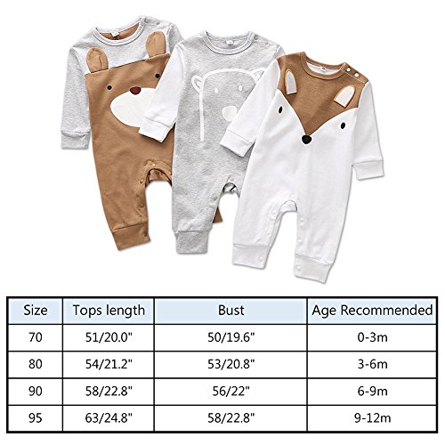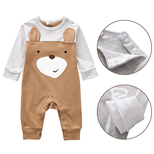 Cutelove ジャンプスーツ オーバーオール 長袖 男の子 女の子 赤ちゃん 春 秋 冬 コットン 可愛い 普段着 動物柄 ベビー服 開きスナップボタン