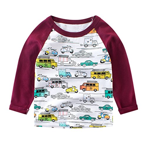 Cutelove Tシャツ 車柄 コンビネーションしやすい 長袖 ロングスリーブ 男の子 ボーイズ ベビー 赤ちゃん 幼児 秋 可愛い ファッション カジュアル 普段着 韓国 4色