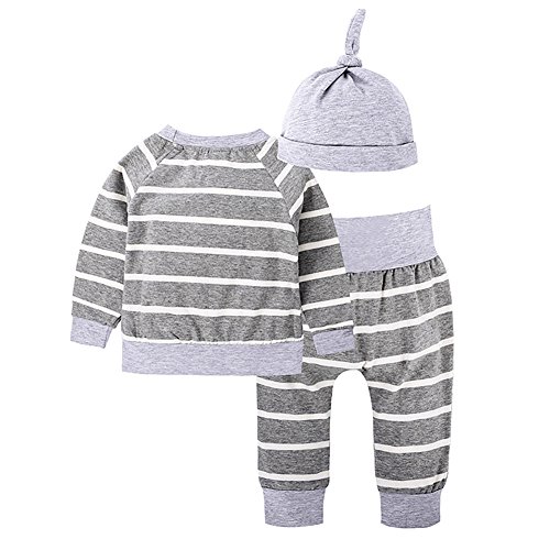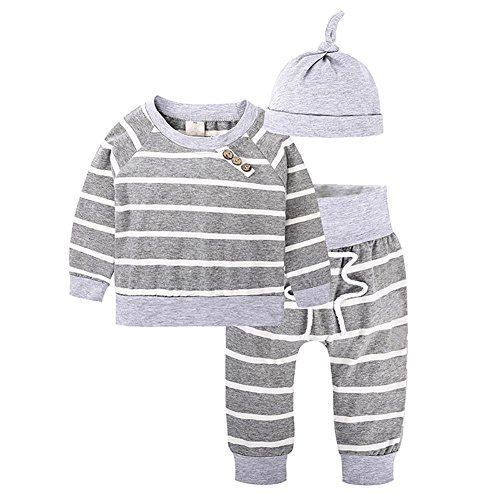 Cutelove コート+ロングパンツ+帽子3点セット ストライプ マッチングしやすい トップス 長袖 綿 男の子 ベビー ボーイズ 赤ちゃん 幼児 ベビー服 秋 可愛い ファッション 素敵 カジュアル 普段着 韓国