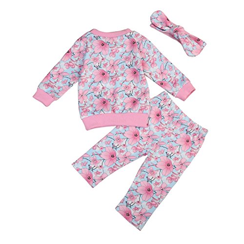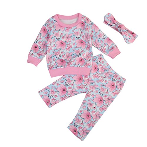 Cutelove Tシャツ+ロングパンツ+ヘッドバンド3点セット パジャマ 部屋着 花柄 長袖 綿 女の子 ベビー 赤ちゃん 幼児 ベビー服 秋 冬 可愛い ファッション 素敵 カジュアル 普段着 韓国