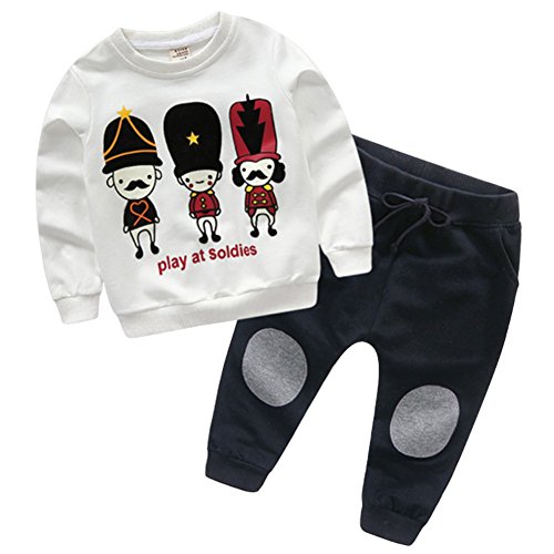 Cutelove セーター+パンツ2点セット ラウンドネック 3人兵士 トップス ロングスリーブ 長袖 スポーツズボン 綿 男の子 女の子 ベビー ボイズ ガールズ 赤ちゃん 幼児 春 秋 可愛い ファッション 素敵 カジュアル 普段着 韓国 チュチュベビー