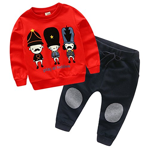 Cutelove セーター+パンツ2点セット ラウンドネック 3人兵士 トップス ロングスリーブ 長袖 スポーツズボン 綿 男の子 女の子 ベビー ボイズ ガールズ 赤ちゃん 幼児 春 秋 可愛い ファッション 素敵 カジュアル 普段着 韓国 チュチュベビー