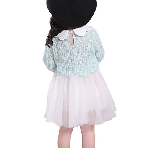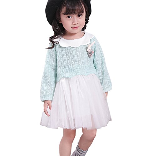 Cutelove ドレス プリンセスドレス ニット レース 花付け ニットドレス 長袖 ロングスリーブ 女の子 ベビー ガールズ 赤ちゃん 幼児 秋 可愛い 素敵 カジュアル 普段着 素敵 韓国 チュチュベビー 2色