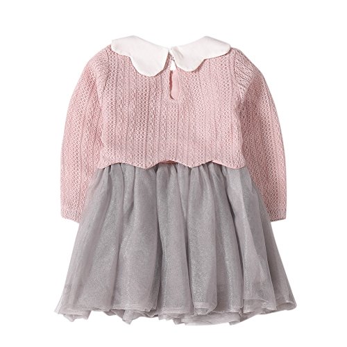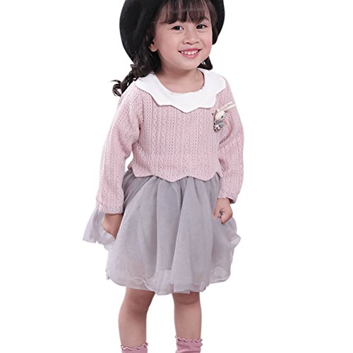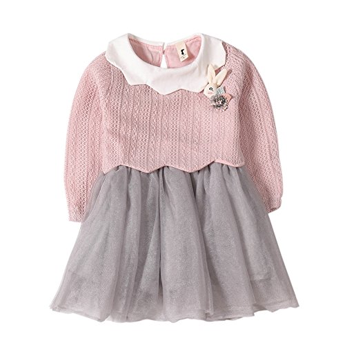 Cutelove ドレス プリンセスドレス ニット レース 花付け ニットドレス 長袖 ロングスリーブ 女の子 ベビー ガールズ 赤ちゃん 幼児 秋 可愛い 素敵 カジュアル 普段着 素敵 韓国 チュチュベビー 2色