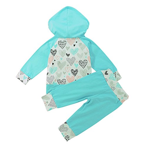 Cutelove コート+ロングパンツ2点セット トップス フード付き ハート柄 長袖 綿 女の子 ガールズ ベビー 赤ちゃん 幼児 秋 可愛い 暖かい ファッション カジュアル 普段着 韓国