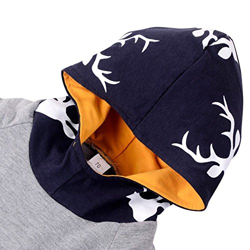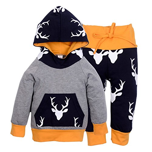 Cutelove ベビー服 子ども服 セーター+ロングパンツ2点セット トップス 帽子付き 鹿柄 マッチングしやすい 長袖 綿 女の子 ベビー 赤ちゃん 幼児 秋冬 可愛い 暖かい 保温 防寒 ファッション カコイイ カジュアル 普段着 韓国 グレー