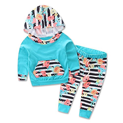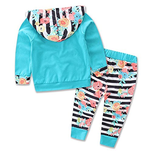 Cutelove コート+ロングパンツ2点セット 帽子付き ストライプ 花柄 トップス 長袖 綿 女の子 ベビー ガールズ 赤ちゃん 幼児 ベビー服 秋 可愛い ファッション 素敵 カジュアル 普段着 韓国