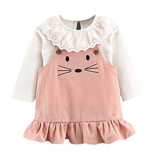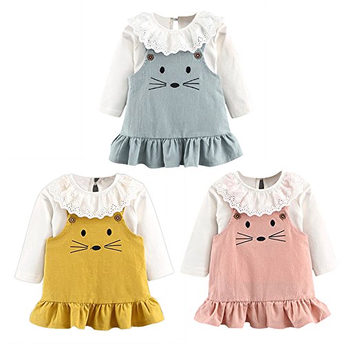 Cutelove ニットシャツ+吊りスカート2点セット ニットウェア ネズミ柄 ロングスリーブ 長袖 吊りワンピース 綿 女の子 ベビー ガールズ 赤ちゃん 幼児 春 秋 可愛い ファッション 素敵 カジュアル 普段着 韓国 チュチュベビー