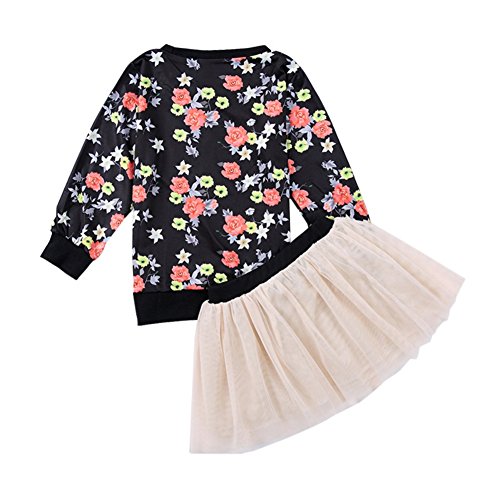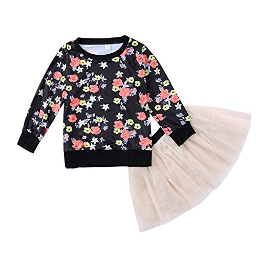 Cutelove Tシャツ+スカート2点セット ラウンドネック 花柄 レース ドレス 長袖 ロングスリーブ 女の子 ベビー ガールズ 赤ちゃん 幼児 秋 可愛い 素敵 カジュアル 普段着 素敵 韓国 チュチュベビー