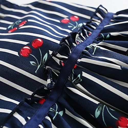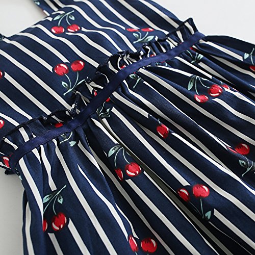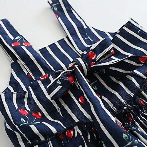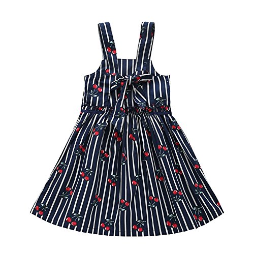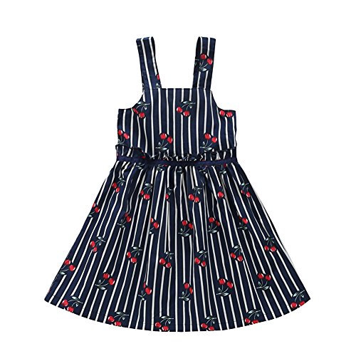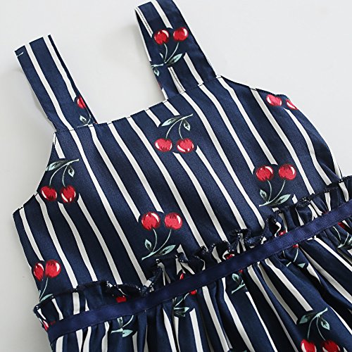 Cutelove 子供服 ドレス ベビー ガールズ 女の子 綿 夏 キッズ 可愛い ネイビー ストライプ チェリー プリント ノースリーブ ワンピース