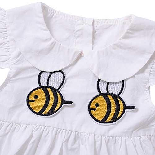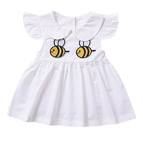 Cutelove 子供ドレス ワンピース 女の子 蜂柄 可愛い 夏 フライ袖 ベビー ドレス 素敵 おしゃれ ホワイト