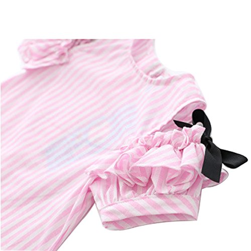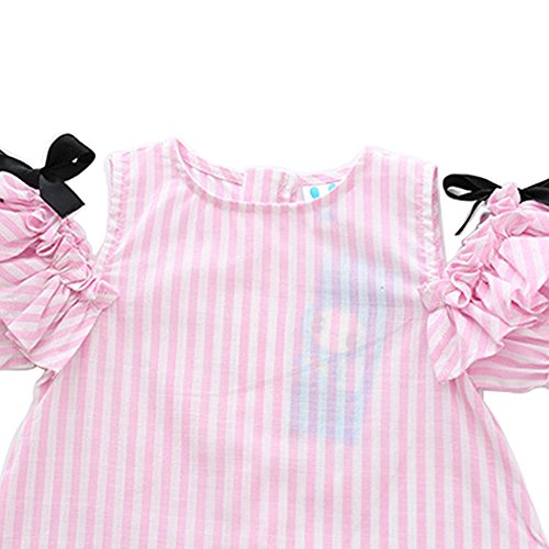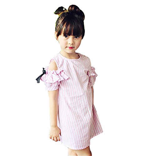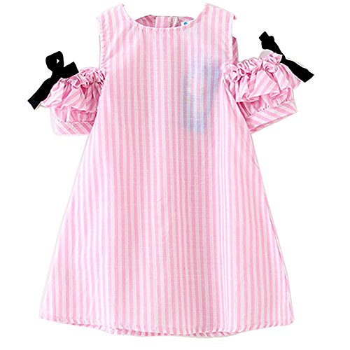 Cutelove 子供ドレス ワンピース 女の子 ストライプ 可愛い 麻綿 夏 半袖 ベビー ドレス 素敵 おしゃれ