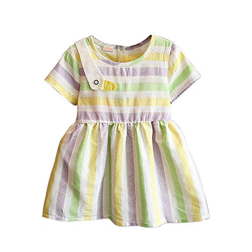 Cutelove 子供ドレス ワンピース 女の子 カラーストライプ 可愛い 夏 半袖 赤ちゃん 素敵 おしゃれ ドレス 2色