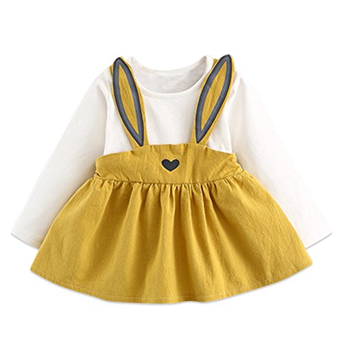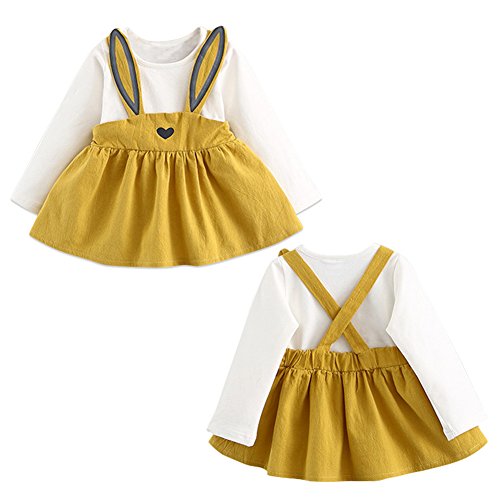 ベビー服 子供服 女の子 ワンピースス プリンセスドレス Cutelove ウサギ 長袖 コットン 綿 ガールズ 赤ちゃん 春秋 可愛い 素敵 洋服 お姫様 フォーマル 入園式 七五三 結婚式 通園 発表会 旅行 記念日 プレゼント 偽2セット 3色