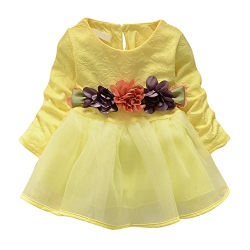 ベビー服 子ども服 女の子 Cutelove ドレス ワンピース プリンセスドレス 花付け 長袖 ベビー ガールズ 赤ちゃん 幼児 秋 可愛い 素敵 カジュアル 普段着 素敵 発表会 結婚式 韓国 チュチュベビー 3色