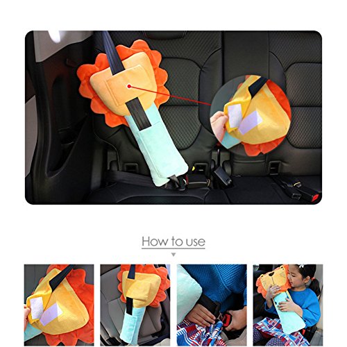 Cutelove シートベルト枕 キッズ 首を守る マジックテープ 取付簡単 カバー 子供 ドライブ カーグッズ お祝い 可愛い おもちゃ 動物 獅子