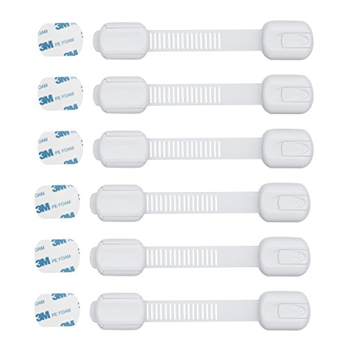 cutesafety子Proofロック – Baby校正ホワイト安全キャビネットロックwith 6 Extra 3 M粘着 – 調節可能なロックラッチをキャビネット、引き出し、ドア、オーブン、冷蔵庫、クローゼットシート、ゴミ箱 – Noドリル必要な