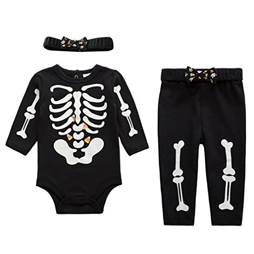 Cuteshower ハロウィン 衣装 仮装 子供 出産祝い ロンパース ベビー服 ガイコツ カバーオール 女の子 18M