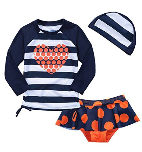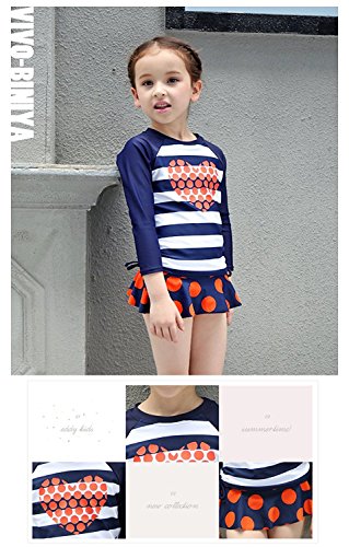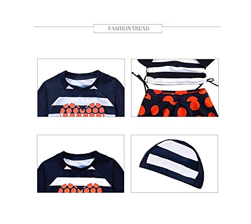 Cuteshower 子供水着 ボーダー柄 長袖 セパレート水着 女の子 3点セット ブルー 8T