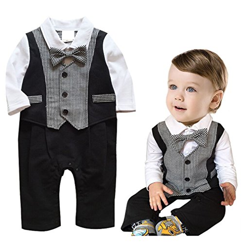 Cuteshower ベビー 子供服 新生児 フォーマルロンパース 男の子 (80サイズ (6-9ヶ月), ブラック)