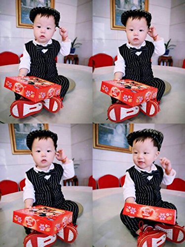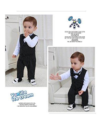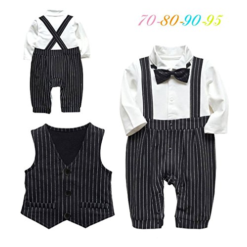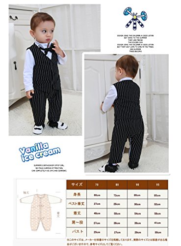 Cuteshower 子供服 ロンパーススーツ ベスト 蝶ネクタイ 3点セット ベビー フォーマル 男の子 ブラック 80
