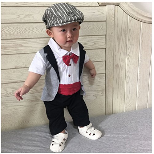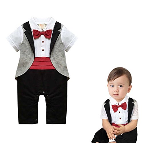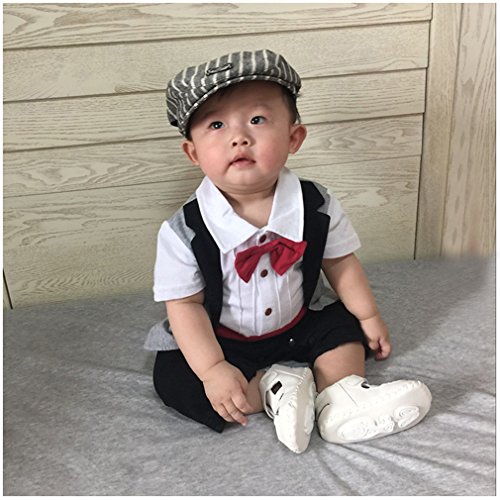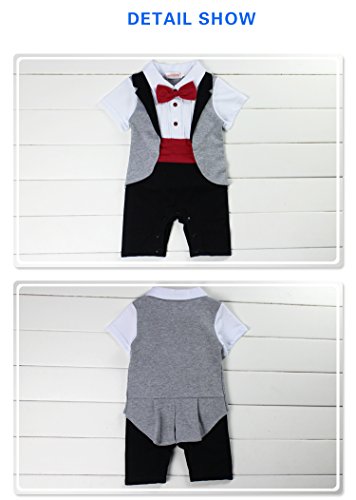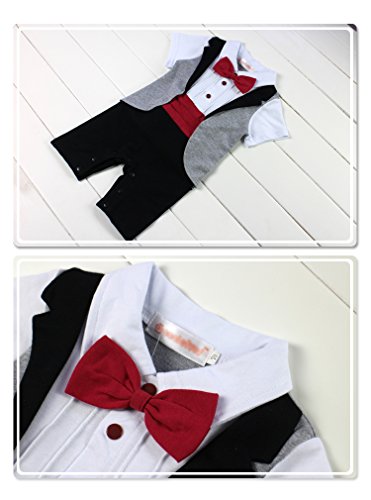 Cuteshower 男の子 フォーマル ベビー服 ロンパース 結婚式 誕生日 お食い初め (80サイズ (6-9ヶ月), ブラック)
