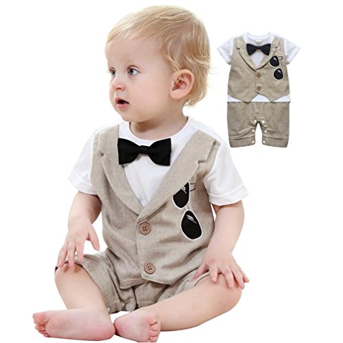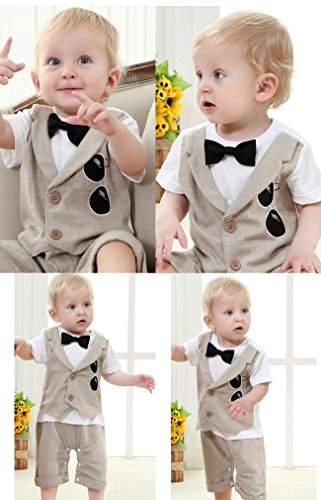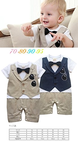 Cuteshower 子供服 キッズ フォーマル 男の子 ベビー カバーオール ロンパース 半袖 新生児 幼児 結婚式 七五三 ブラウン 95