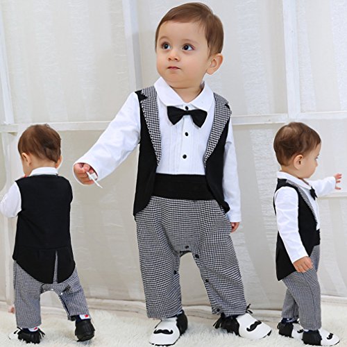 Cuteshower 男の子 スーツ 子供服 ロンパーススーツ ベビー服 ロンパース 新生児 出産祝い 結婚式 長袖 80