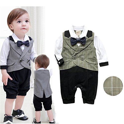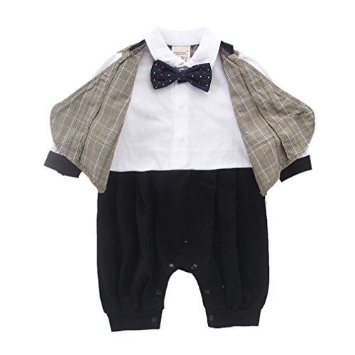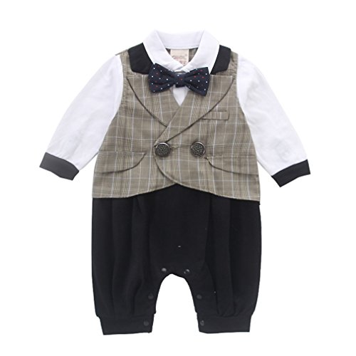 Cuteshower 子供服 紳士服 ベビー フォーマル セレモニーロンパース 結婚式 男の子 カーキ 70