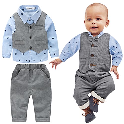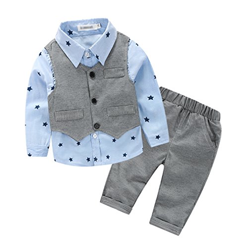 Cuteshower 子供スーツ 男の子 ベビー フォーマル シャツ ベスト 3点セット 結婚式 お誕生日 発表会 グレー 70