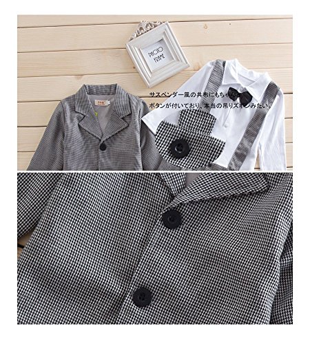- 子供服 ロンパーススーツ ジャケット 蝶ネクタイ 3点セット
