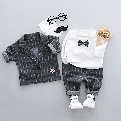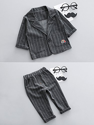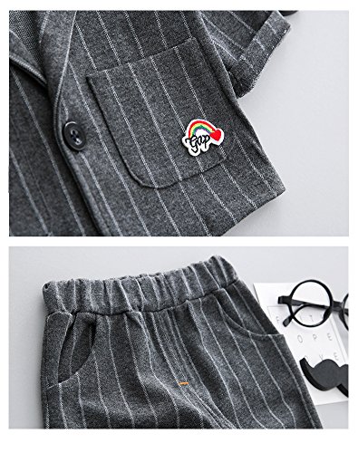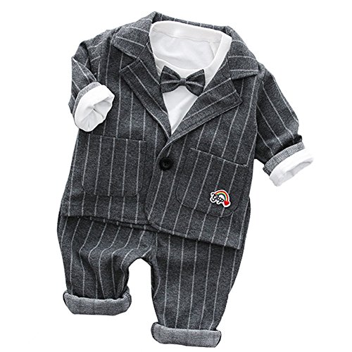 男の子 スーツ Cuteshower 子供スーツ ベビー服 フォーマル 洋服 お宮参り 入園式 結婚式 七五三 3点セット ストライプ グレー 80cm